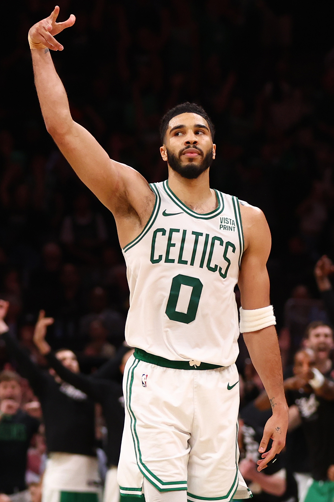 本场比赛,凯尔特人“双探花”均贡献亮眼表现,杰伦·布朗全场20投10中,得到26分7个篮板5次助攻3次抢断;塔图姆全场26投12中,得到36分12个篮板4次助攻3次抢断,球队后卫霍乐迪也有28分7个篮板8次助攻3次抢断入账。值得一提的是,这也是塔图姆、布朗在季后赛中第16次同时砍下25分以上,距离前辈拉里·伯德和麦克海尔的队史纪录17次还差一场。塔图姆在近5场季后赛中场均能够得到30.4分、10.6个篮板和6次助攻,在这5场比赛中“绿衫军”赢下了其中4场。