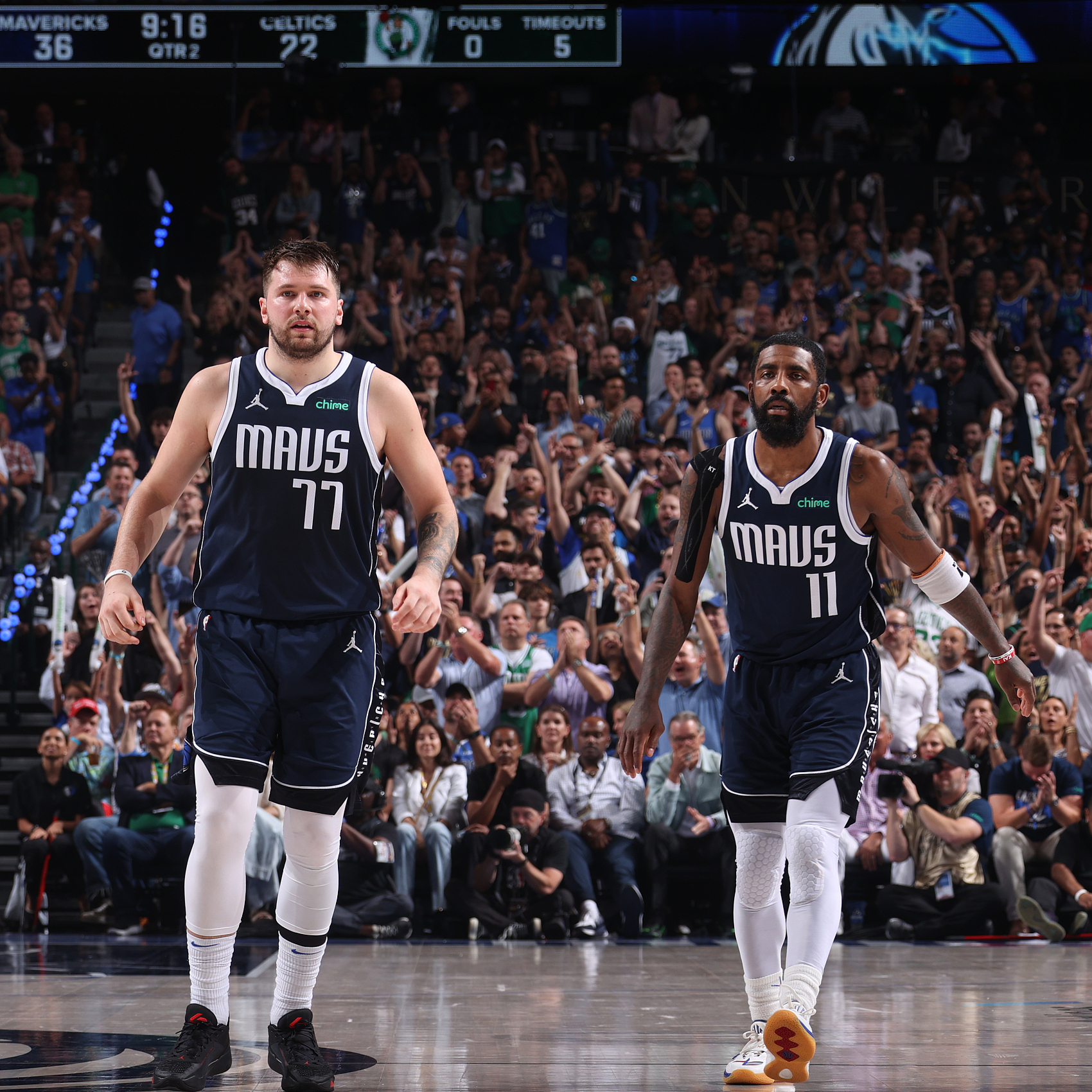 面对绝境,独行侠众将此役拿出背水一战的心态和勇气,球队在开局的前10分都是由“东欧组合”东契奇和欧文包办,其中东契奇得到6分。而当凯尔特人的“双探花”(塔图姆、布朗)合砍11分作出回应之后,东契奇再次接管比赛,首节他就得到13分并抢到3个篮板,第二节,东契奇依旧延续强势进攻表现,得到12分并送出3次助攻。在东契奇和欧文率领下,独行侠多点开花并始终保持巨大领先优势,以61比35领先结束半场。