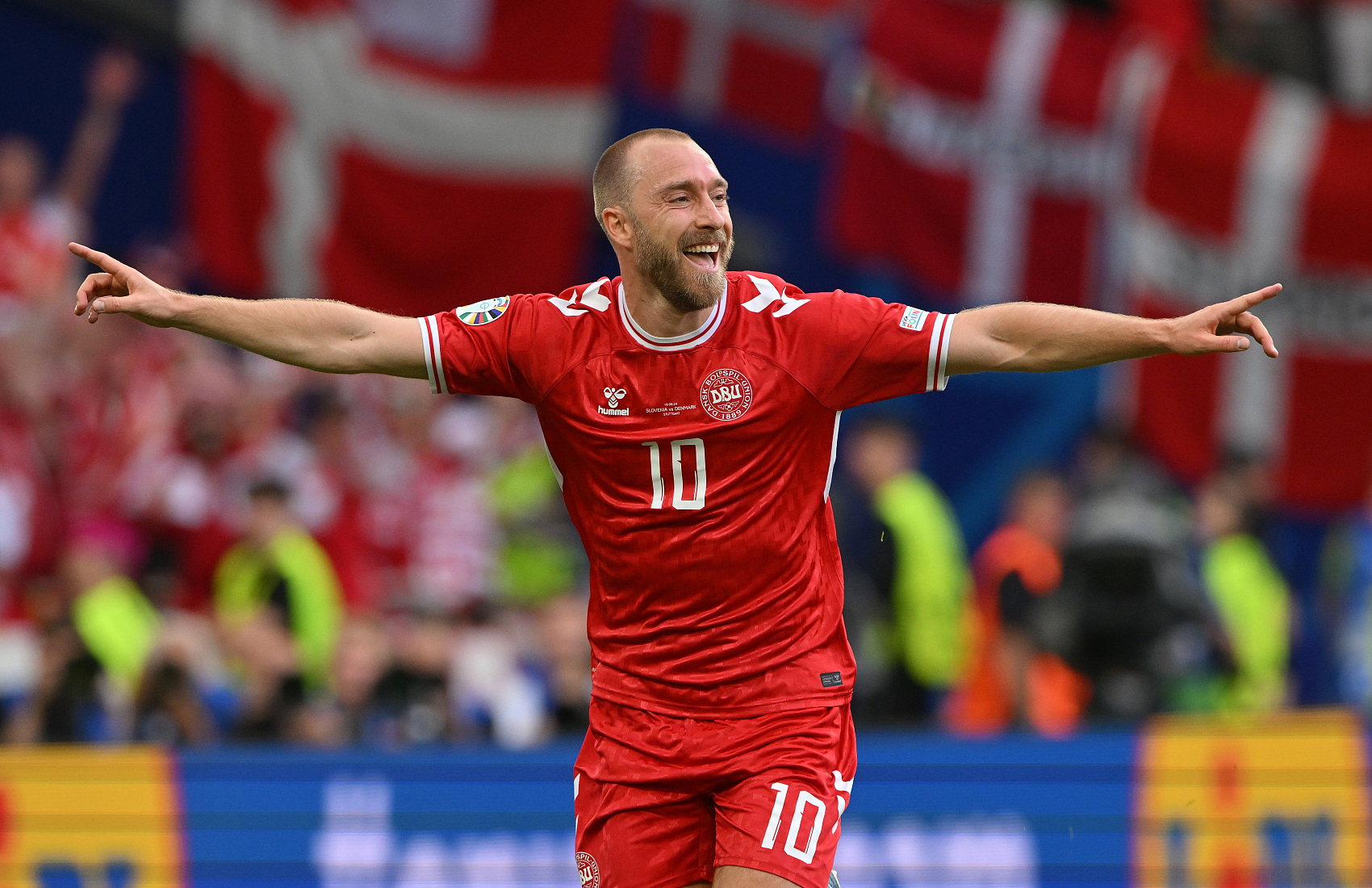 1100天之后的今天,在2024欧洲杯小组赛首轮,这句话变成了现实。埃里克森不但回到了欧洲杯的舞台,而且打入丹麦队全场唯一进球,帮助球队战平了斯洛文尼亚。