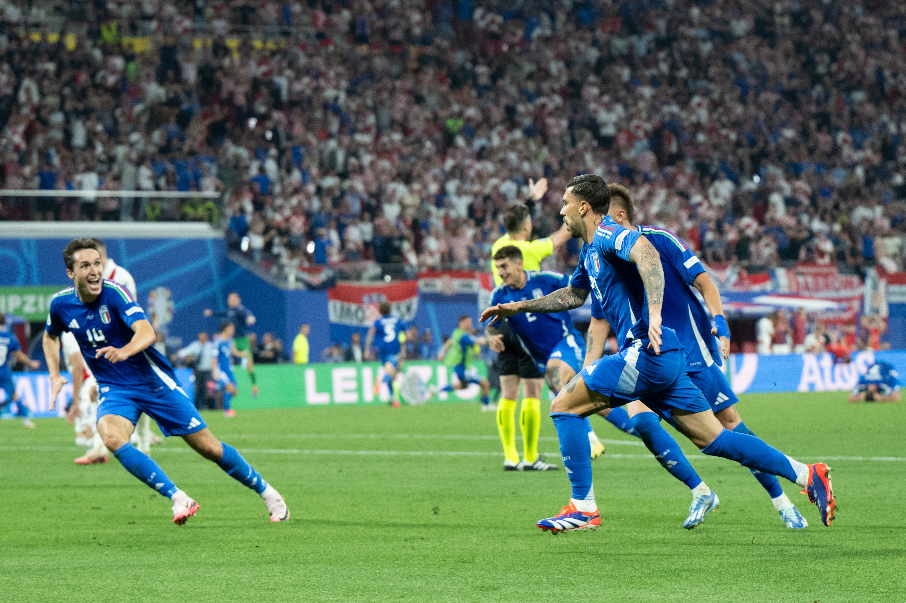 欧洲杯小组赛第3轮,伤停补时最后时刻进球成了多支球队的拿手好戏,继A组的德国和匈牙利之后,B组的意大利也玩了一次心跳。北京时间6月25日凌晨在德国莱比锡竞技场,上届冠军意大利在伤停补时第8分钟以1比1逼平2018世界杯亚军克罗地亚,以最惊险的方式演绎了打平就出线。