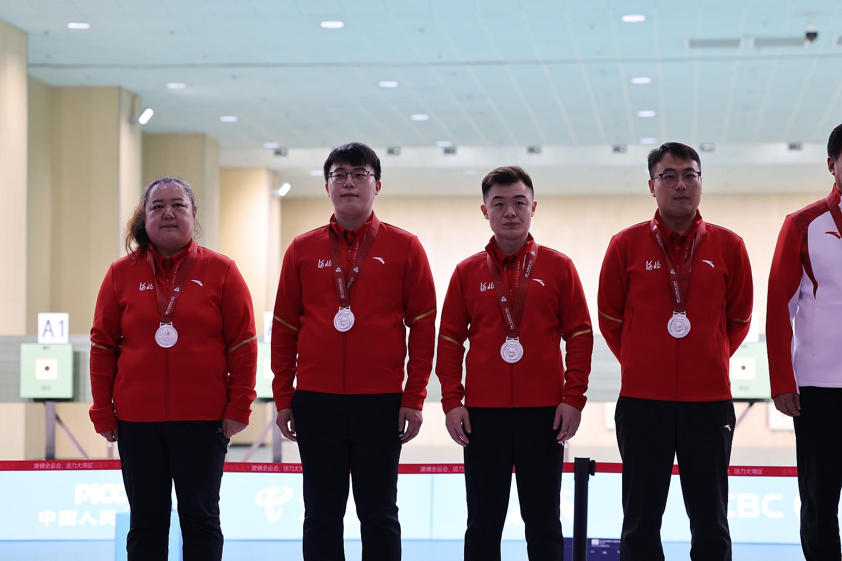 10月16日,十五运会射击项目男子10米气手枪团体赛在广东省黄村体育训练中心落幕,由胡凯、刘子扬、张浩组成的安徽队夺冠,在本届赛事已经收获了男子10米气手枪个人赛冠军的牛琪松和队友胡鹏琦、路世昌获得亚军。在本届赛事已经收获一金一银的牛琪松笑称广州可以算得上是他的福地:“我觉得广州挺好的。”