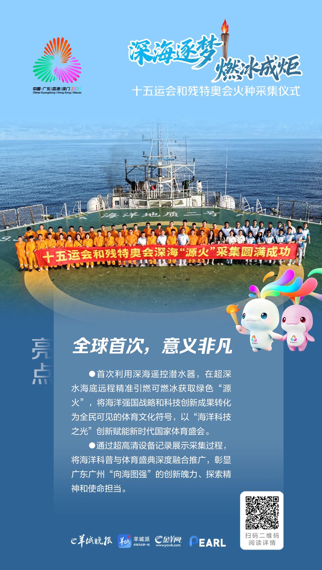 10月9日,十五运会和残特奥会火种采集仪式在广州南沙科考码头举行。深海逐梦,全运之火见证海洋科技之光!本次深海采火亮点抢鲜看!