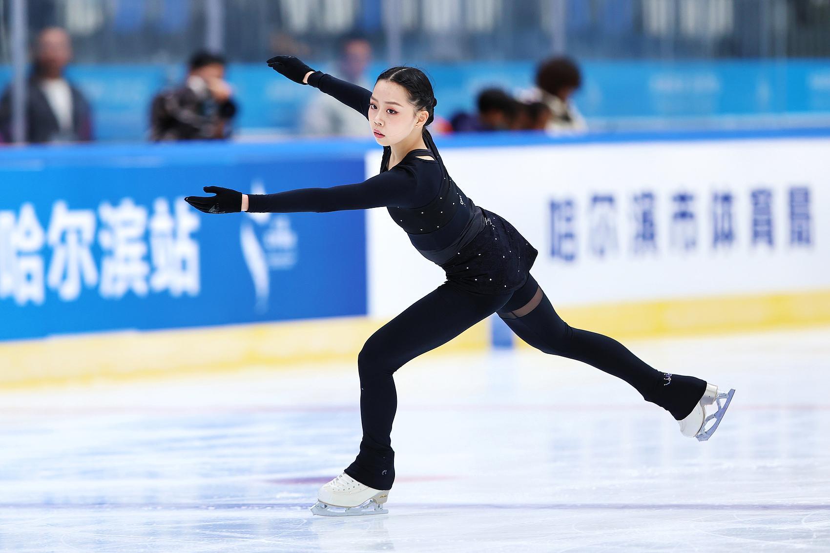 这位14岁的运动员已获得 “国家级运动健将”称号。在2025年7月的济南站比赛中,她还获得了成年组女子单人滑亚军。